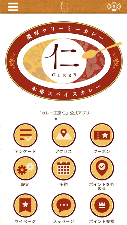 このアプリでは、カレー工房仁の最新情報の受け取りや便利な機能を使う事ができます。