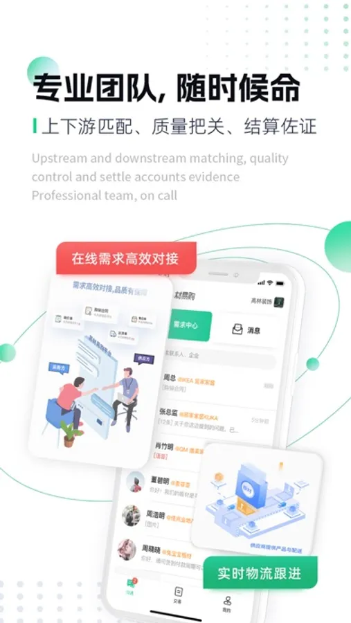 流程:供需匹配 -> 合同签署 -> 发货&签收 -> 财务对账。