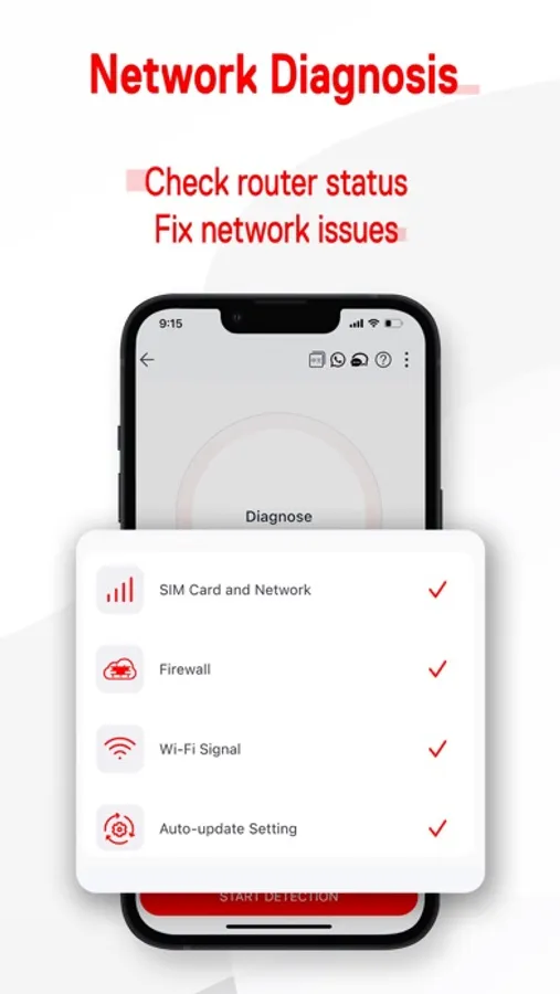 Check your SIM card, network connection, and other statuses. Provide relevant suggestions to fix network issues