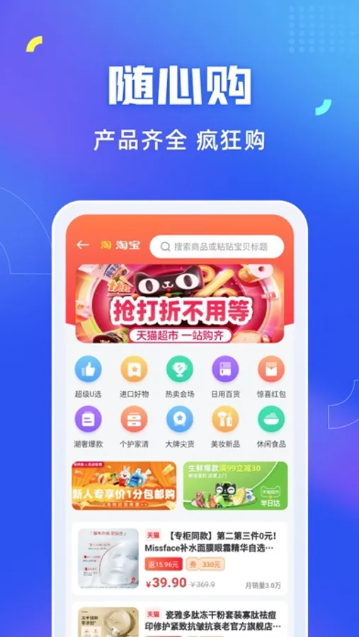 1.购物领取大额优惠券:叠加优惠再减,随时随地轻松购物;