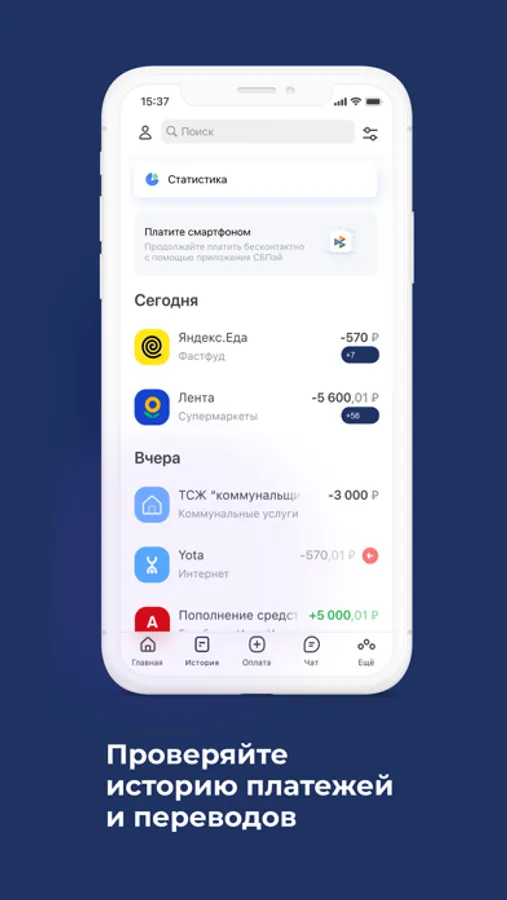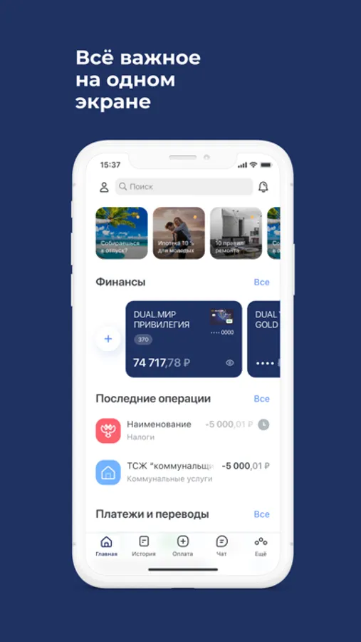 - быстрая оплата услуг ЖКХ, мобильной связи, интернета, ТВ и пр.