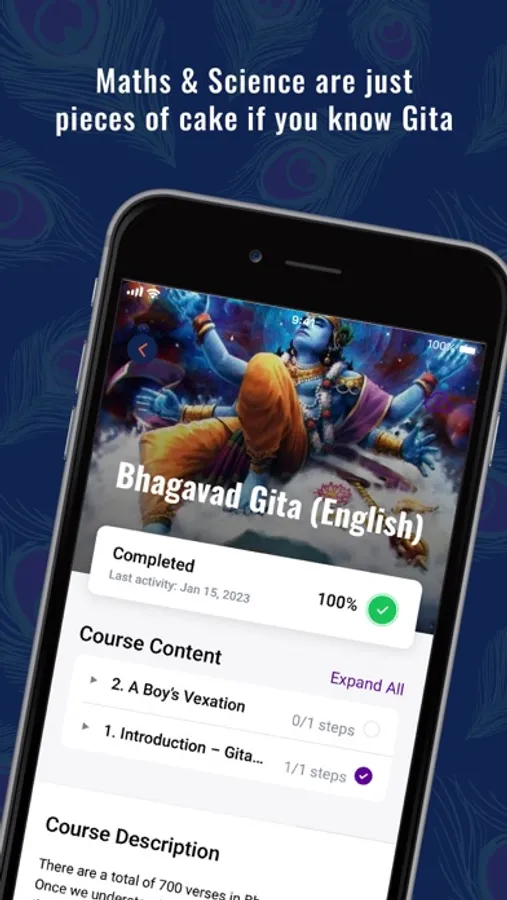 Chanting of verses help us to memorise the essence of Bhagavad Gita forever. We included chanting in an effective way so that they are remembered always.