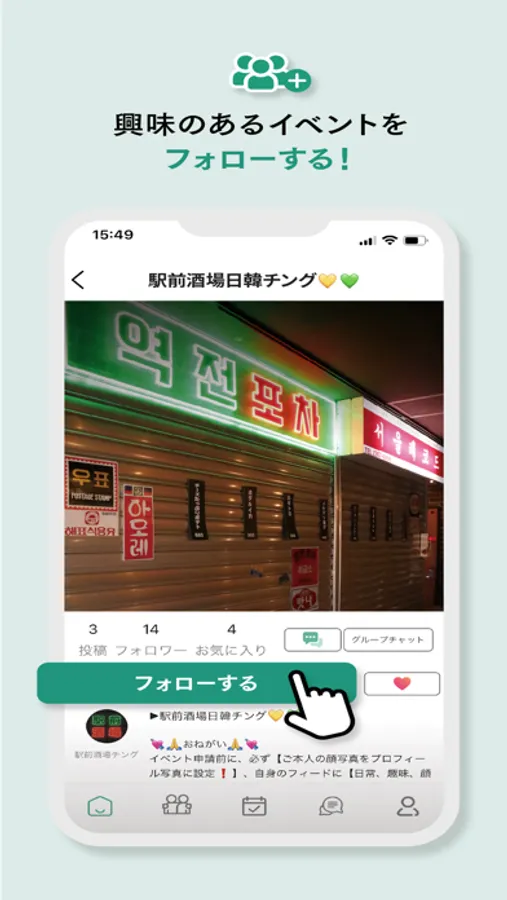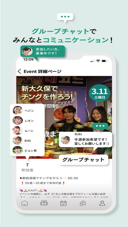 みんなが求める場所を基準にGrouPINgを作り、趣味/好みが合う人たちと楽しい時間を送り、様々な人たちとの経験、交流の幅を広げるチャンス!