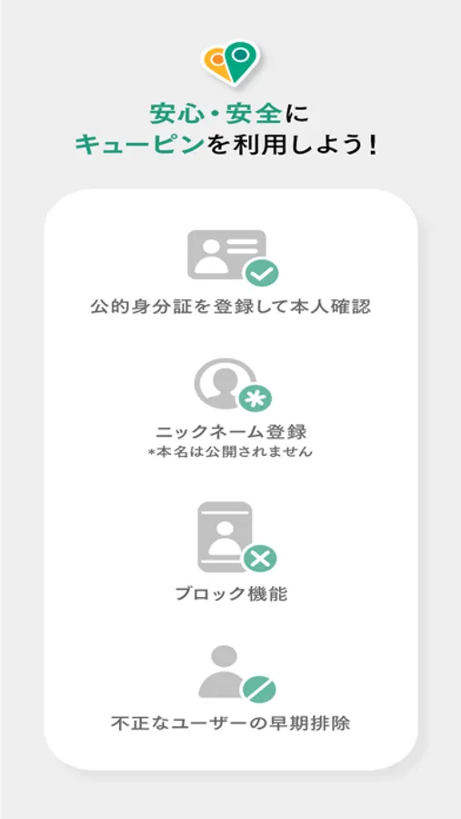 ㆍ 身分証明書による身元管理でモニタリングと会員の通報を通して発見した悪質ユーザー直ちにアプリの利用を制限し管理します。(収集した会員情報は本人確認のためにのみ使用されます。)