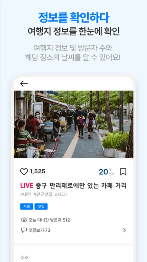날갬을 이용하면 관광지의 실시간 날씨 정보를 이용할 수 있습니다.