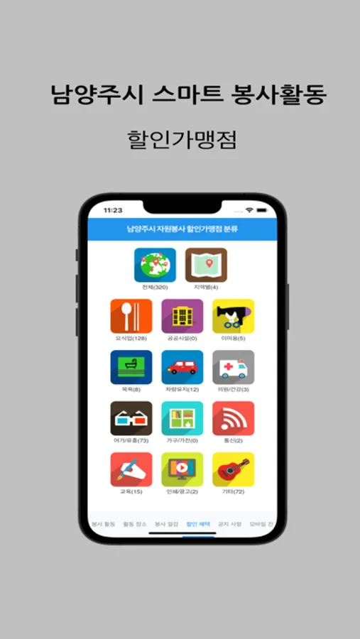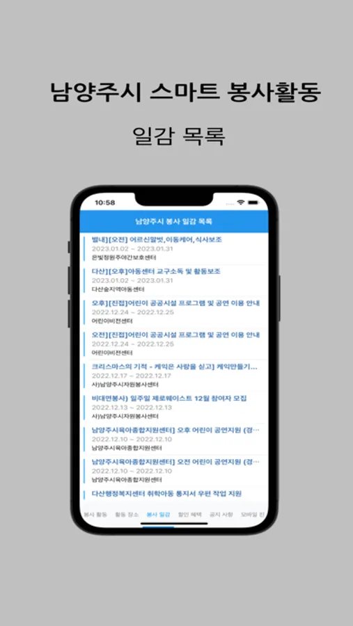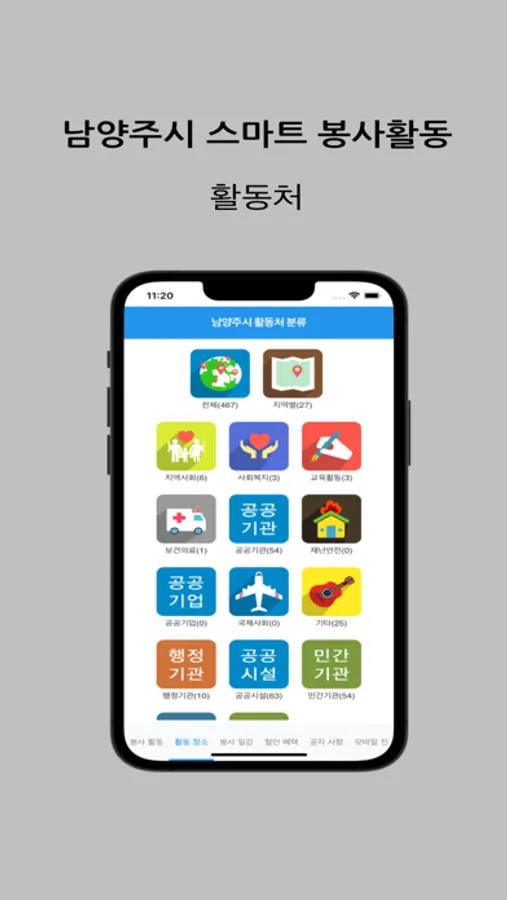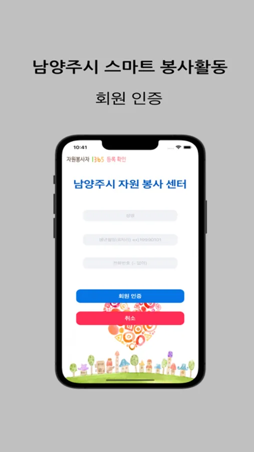 자원봉사활동시 스마트폰을 이용하여 봉사활동 시작과 종료시간을 기록관리하는 것입니다.
