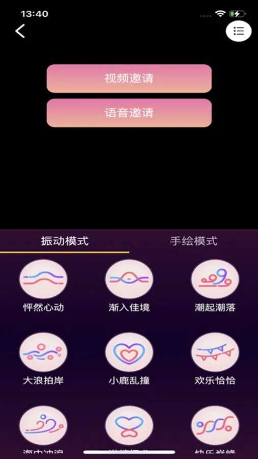 随机酷玩:随机展示不同的酷玩模式,设备自动同步不一样的震动频率;
