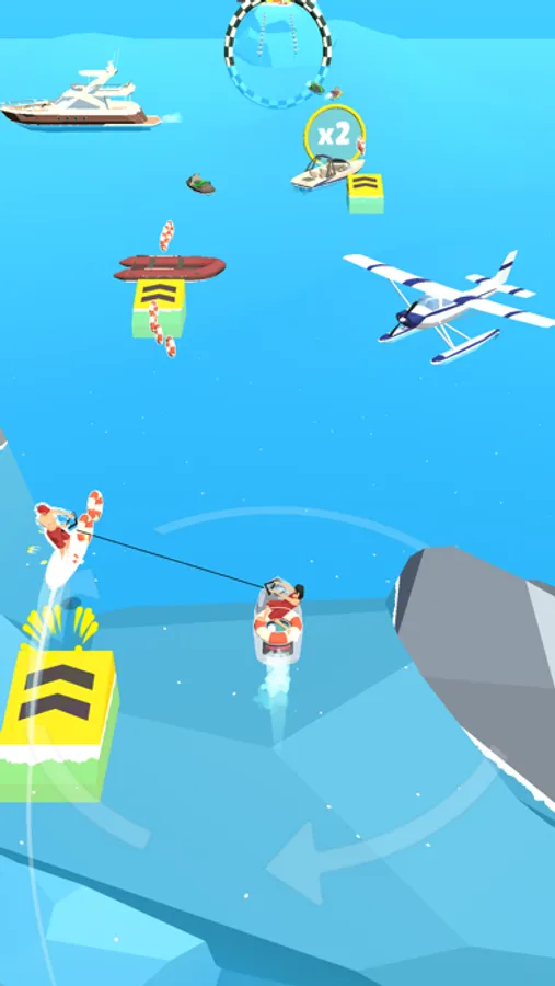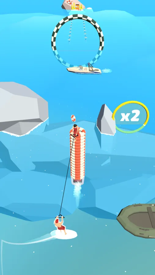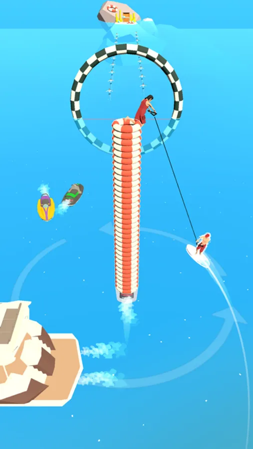 Surf your way around the dangerous dangers of the watery waters to save lives in a clockwise and anticlockwise fashion!