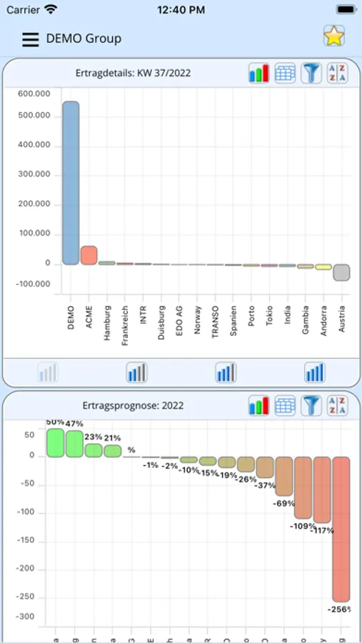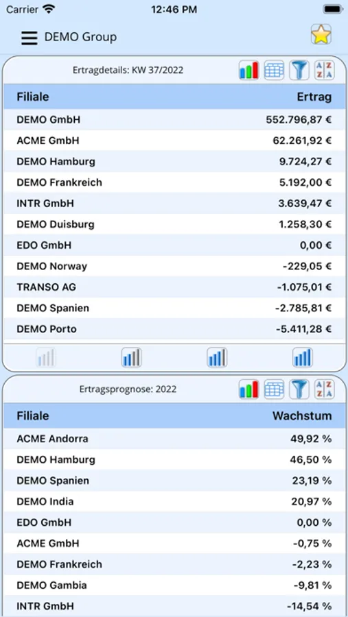 Die Kennzahlen werden sowohl für die einzelnen Unternehmen/Filialen des Konzerns als auch zusammengefasst für den gesamten Konzern