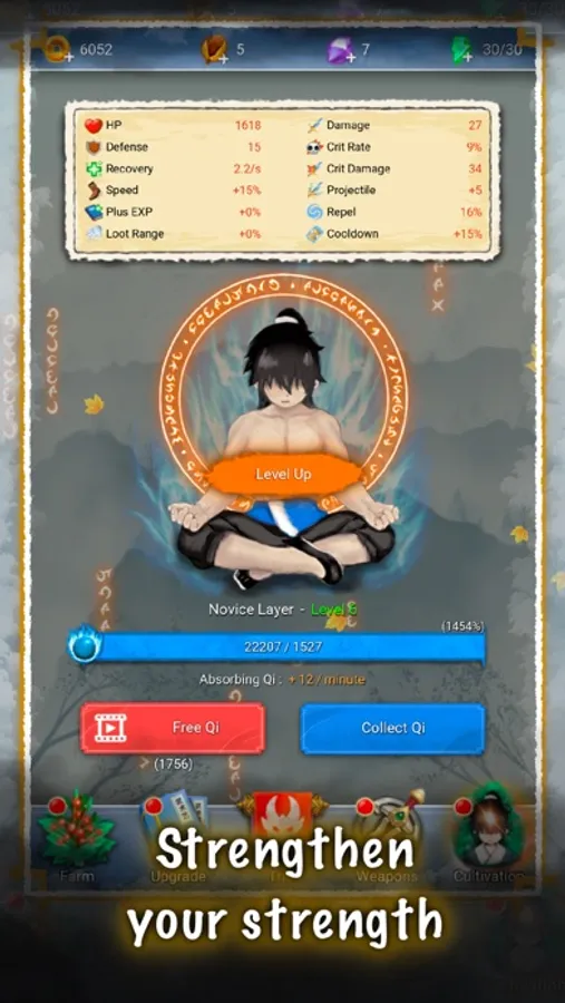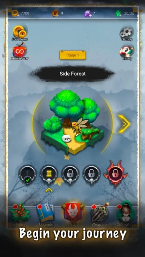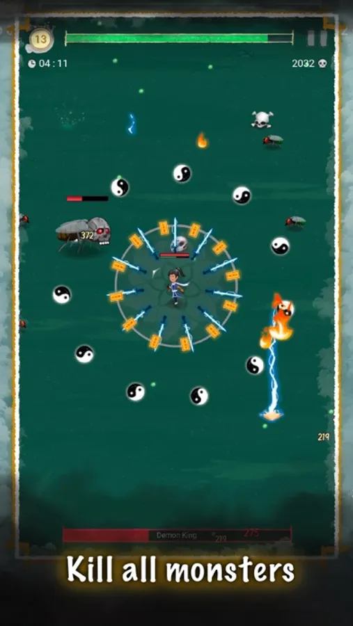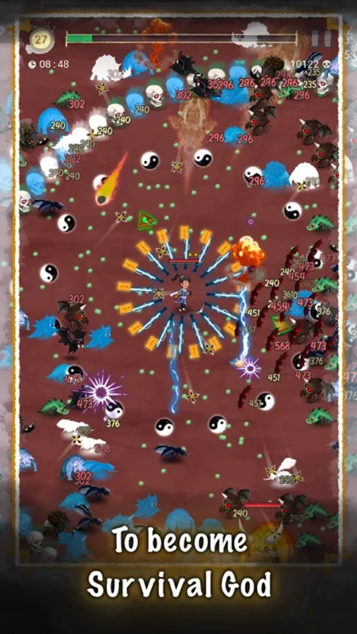 Survival God is a game with an ancient style, set in a fantasy setting in eastern mythology. You will have to challenge and defeat all the monsters on your way. By constantly cultivating your strength, learning more skills, equipping and upgrading your weapons, you will be able to overwhelm all the monsters around you.