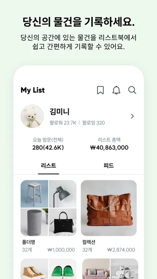당신의 공간에 있는 물건을 리스트북에서 쉽게 기록하고