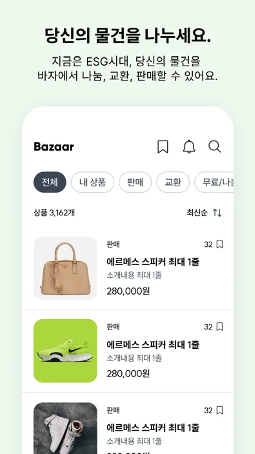 바자에서 다른 사람들과 나눔, 교환, 판매할 수 있어요.
