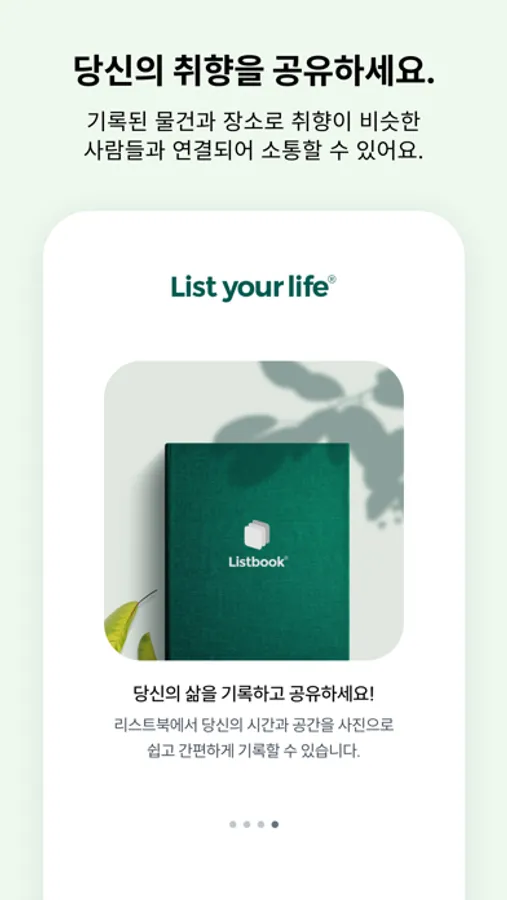 당신만의 리스트북으로 쉽고 편리한 인생 기록 서비스를 경험할 수 있어요.