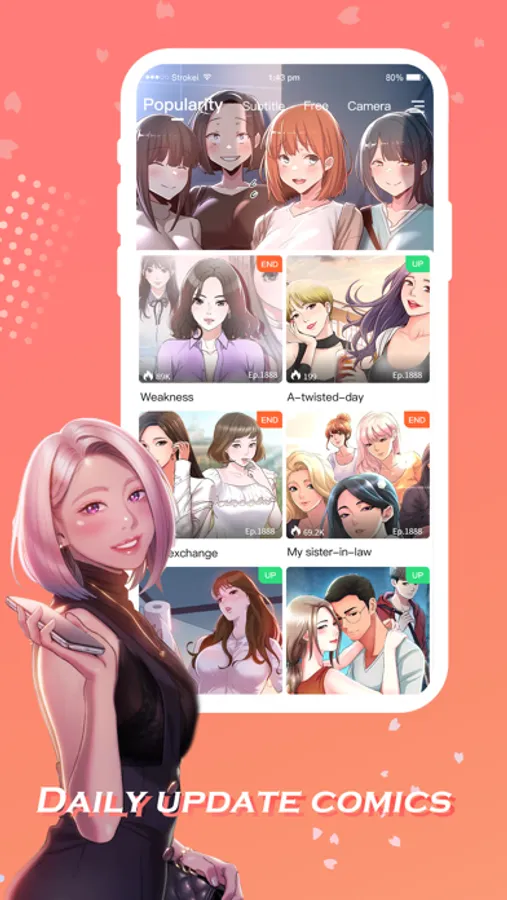 Tips: The language of comic content defaults to the language of the mobile phone system