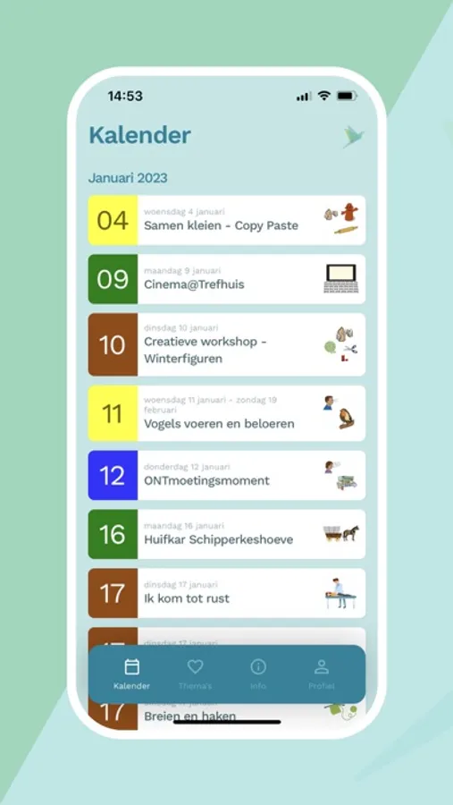 In dialoog en samen met andere partners werken we graag aan kwaliteit van leven! De Treffer bundelt alle vrijetijdsactiviteiten die De Lovie vzw organiseert voor personen met een verstandelijke beperking. Het aanbod is heel ruim: rustig, belevingsgericht of meer actief en uitdagend. Er is keuze uit activiteiten natuur, muziek, vorming, zinzorg, cultuur of evenementen.