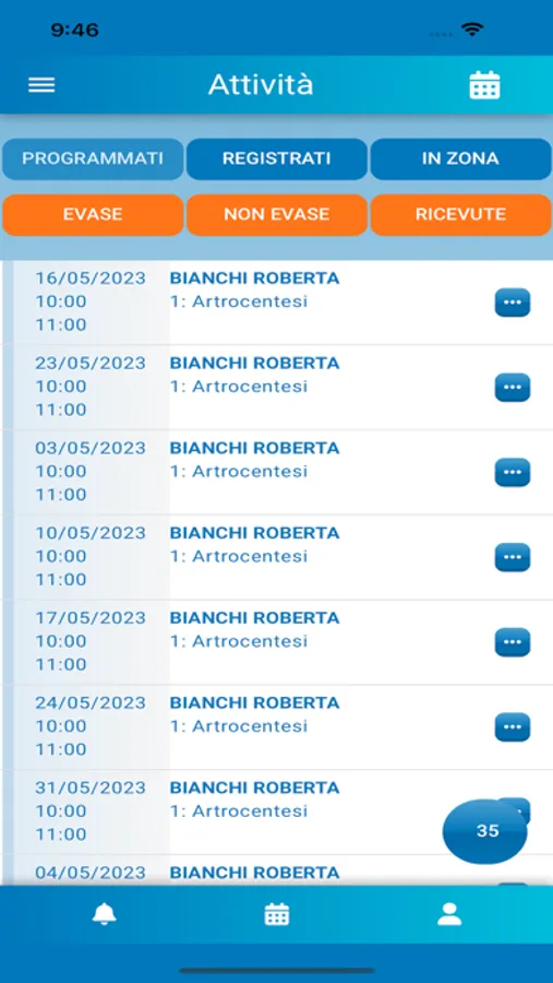 Da una visione d'insieme è possibile registrare l'appuntamento programmato in maniera rapida e precisa. Con la funzionalità di "inizio" e "termina" o "registra", il personale incaricato può timbrare i propri appuntamenti pianificati in totale autonomia, aggiornando in tempo reale il coordinatore della programmazione svolta.