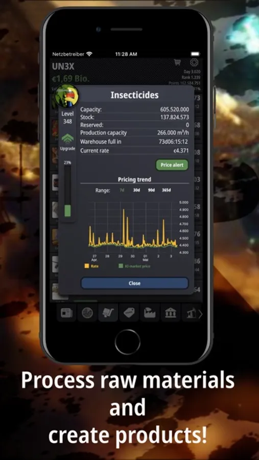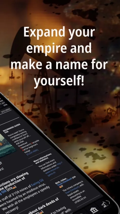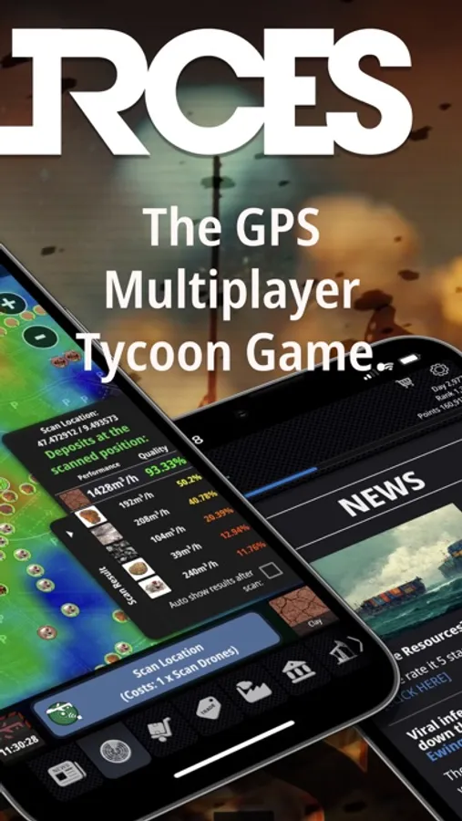Explore the real world around you for valuable resources and have them displayed on the map. Extract resources and process them into products. Make money, expand your facilities, and climb the leaderboard by making headlines in the NEWS or upgrading your headquarters faster than your competitors.