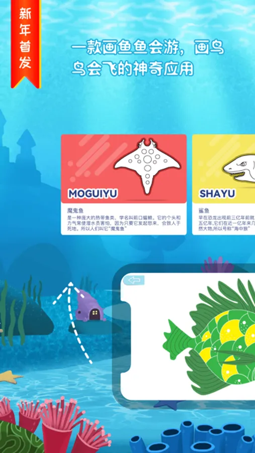 一款画鱼鱼会游,画鸟鸟会飞的神奇应用。