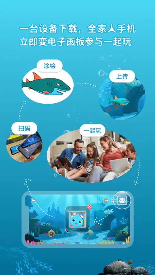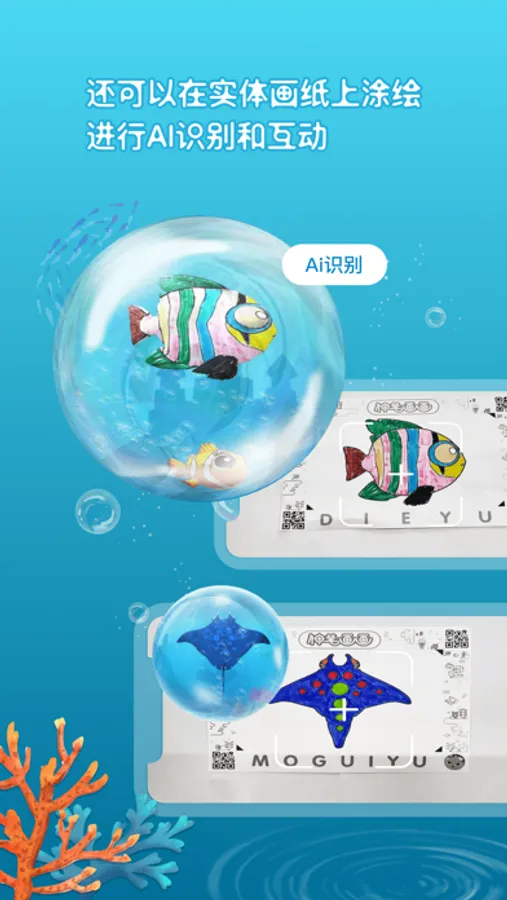 今天科技赋予了我们更多想象,专为小朋友设计的美学创造力APP。创意儿童画画,只需要选择喜欢的角色进行涂绘,就可以让作品在场景里活起来,呈现画鱼鱼会游,画鸟鸟会飞的虚拟现实奇幻场景。也是一款有趣的亲子互动游戏。