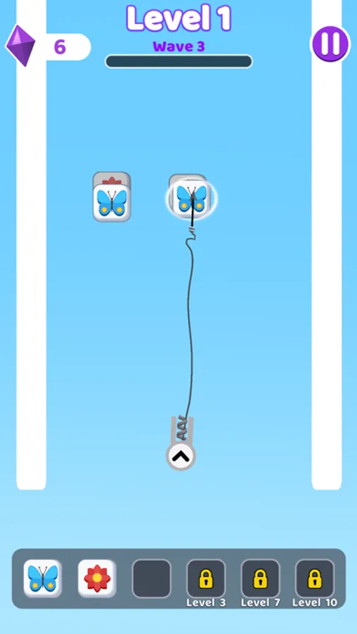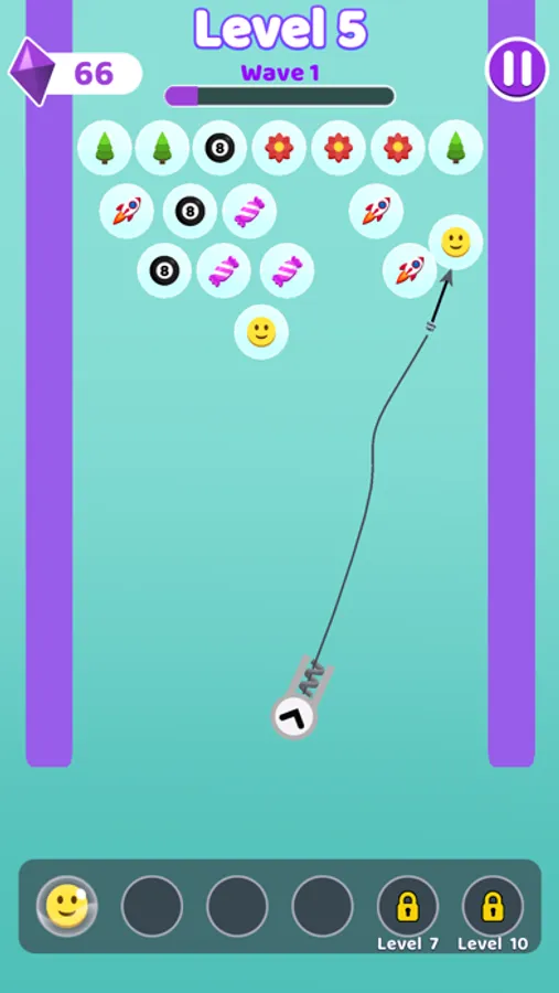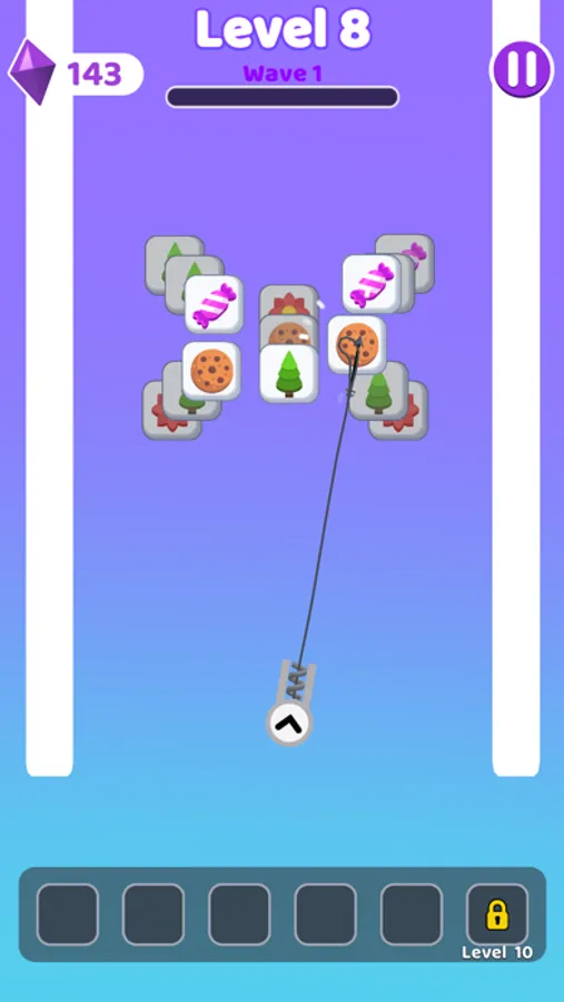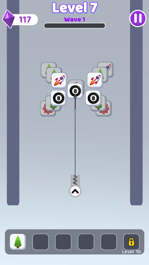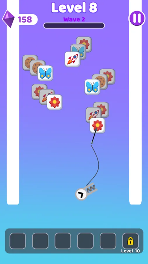 Welcome to your match area. You see the square shapes. Here is the mission: You need to match the square shapes until make them triplets. How? I'm telling you now. At the bottom there is a slot area. You basically control the bow by Rotating it. When you choose the square then realese for the jab. Repeat this until you have same shapes as triplets in the slot. That's all. You are going well so let's see.