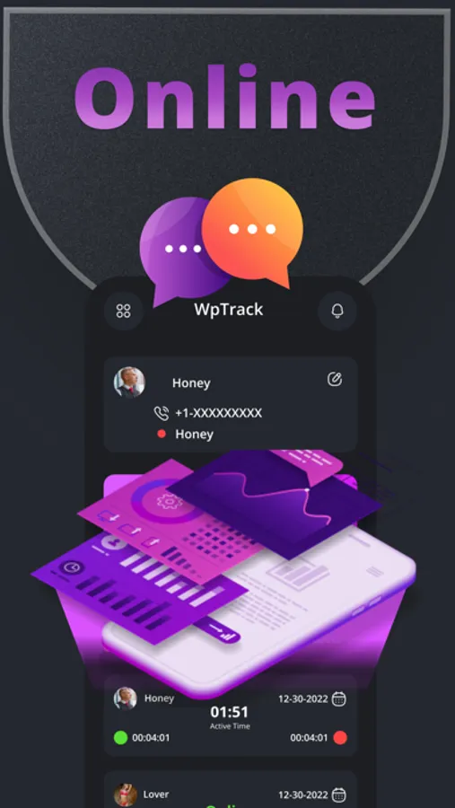 Please note that WpTrack Last Seen Online Tracker only displays public data that the user can already see in best known messaging apps. The application does not access, collect or transmit any data from users' devices or other devices.