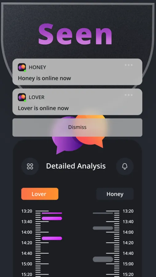 Track last seen your child's or other family members' online activities. Is your child really sleeping? How many times was your sister online on (The most used chat application by everyone) online at night? Receive instant notifications and status reports in real time. Who viewed my activities ?