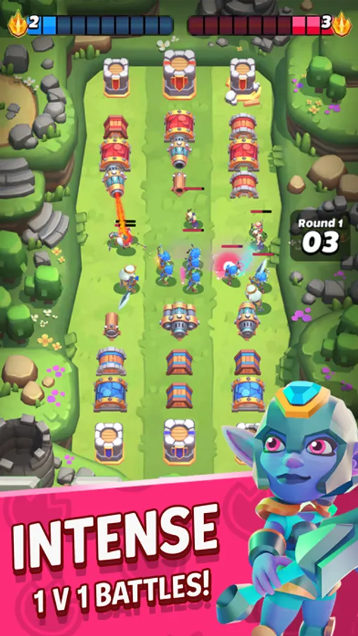 In Merge Rivals, players compete in real-time to merge Cannons and Tents to grow their armies. Use energy wisely! Build top-of-the-line Cannons to merge, or specialized Tents to expand your army to overwhelm the competition!