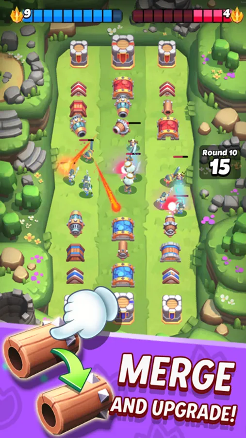 Face opponents from all over the world! Prepare for an incredible MERGE battle! Merge to UPGRADE your arsenal. UNLEASH your army to defeat your enemies!