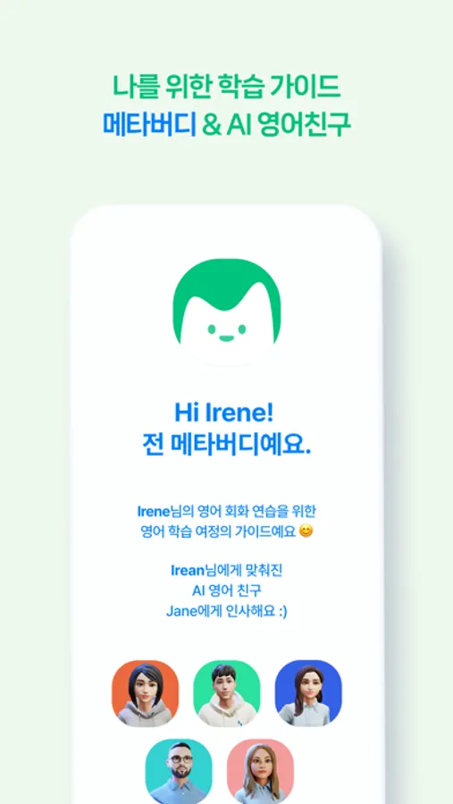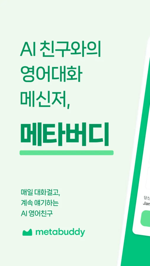 "Metabuddy와 함께하는 영어공부. 떠오르는 생각과 함께, 멋진 영어 대화를 시작하세요!"