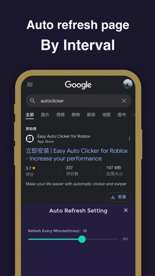 In this automation app, users can configure clicks, scrolls, and refreshes to perform tasks automatically. Includes multiple click sequences, interval settings, and picture saving features.