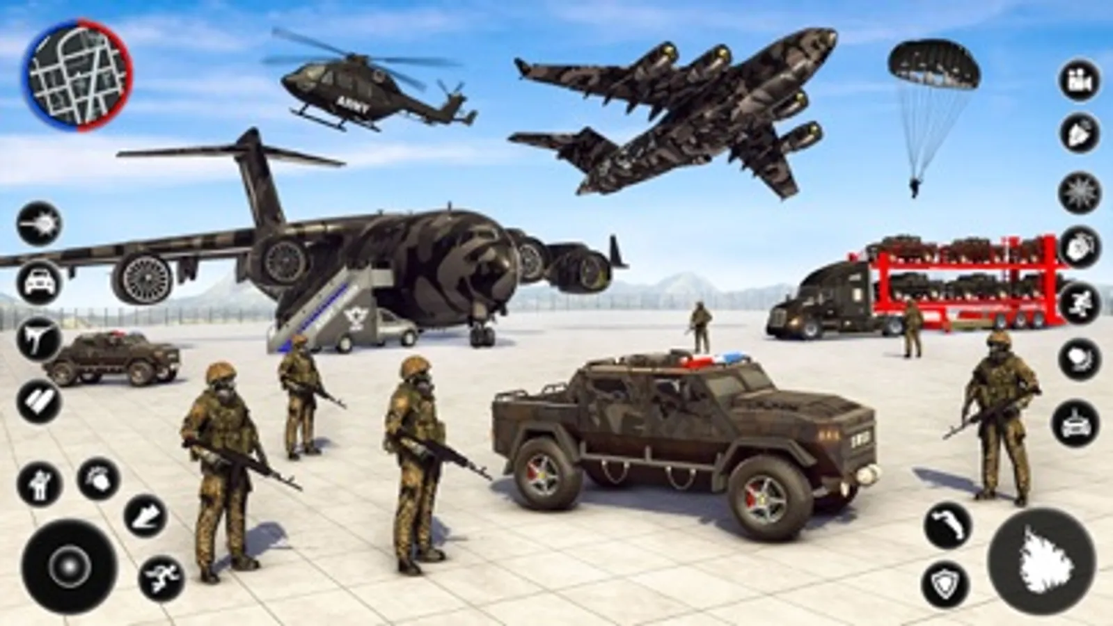 Present yourself as car transporter truck driver of US truck army games in lines of cargo transporters of heavy truck transport simulator and force all car transport authorities of transport truck driving simulator to admire your talents as vehicle transporter truck cargo driver in modern transport truck games. Expand your visions as US helicopter car transporter of US delivery games, truck simulator games, and driving off-road games to bring real revolution in trailer transport games by transporting heavy machinery of heavy vehicle driving games. Drive army jeep of car transport lorry games in euro truck army games and park vehicle transporter truck as a transport master driver to enroll yourself in master car driving school of new truck driving games. Take army car in sports car parking simulator of car transporter truck driving simulator and make grand show of your parking & truck transport simulator skills by parking it on army truck place to impress the cargo transporters of this lately tuned US army helicopter simulator & transport truck games.
