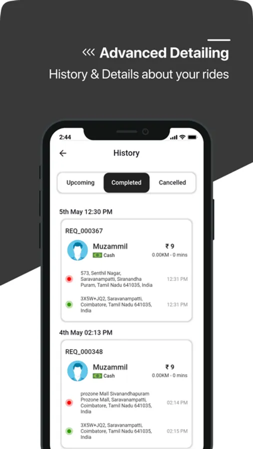 Pick up and journey will be started with secure opt.