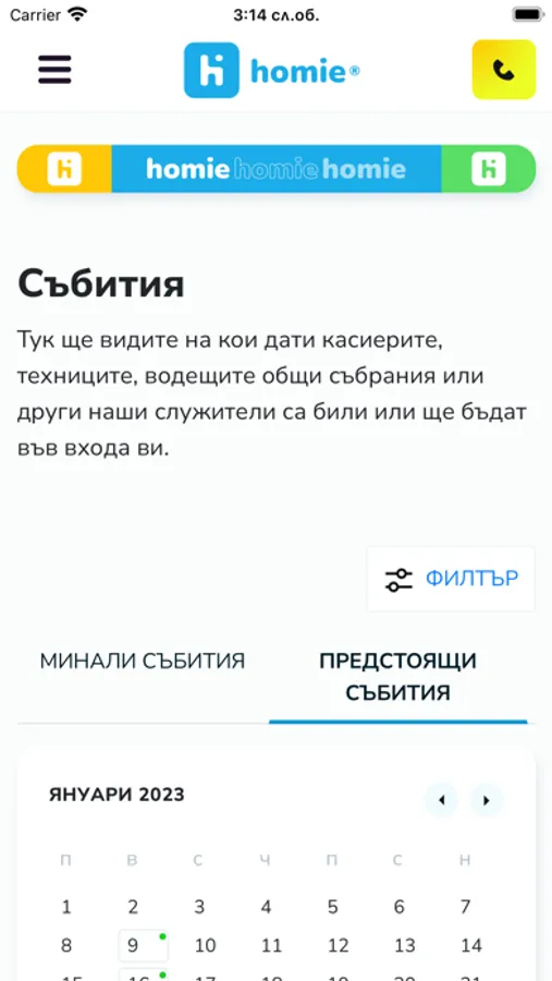 Homie offers services related to the management of residential buildings. The app includes online access to: