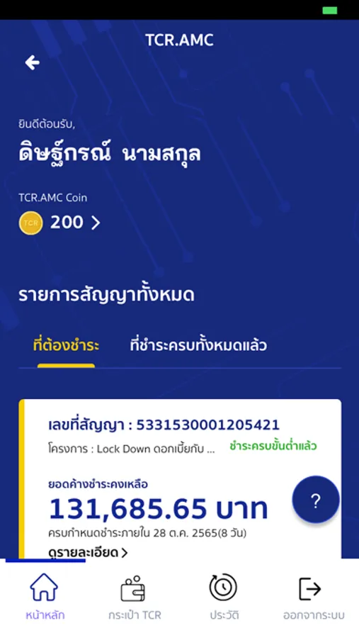 TCR.AMC แอปพลิเคชัน ระบบบริหารจัดการการชําระเงินและสะสม Coin พร้อมให้บริการออนไลน์ เพื่อให้ผู้ใช้สามารถตรวจสอบรายการของสัญญาได้อย่างสะดวกมากยิ่งขึ้น