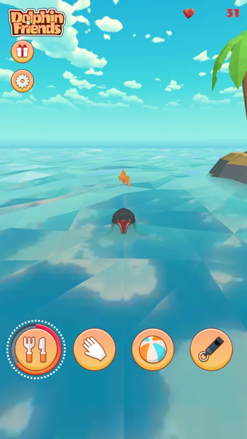 When you accumulate Friend Points, blow the whistle and the dolphins will perform tricks for you.
