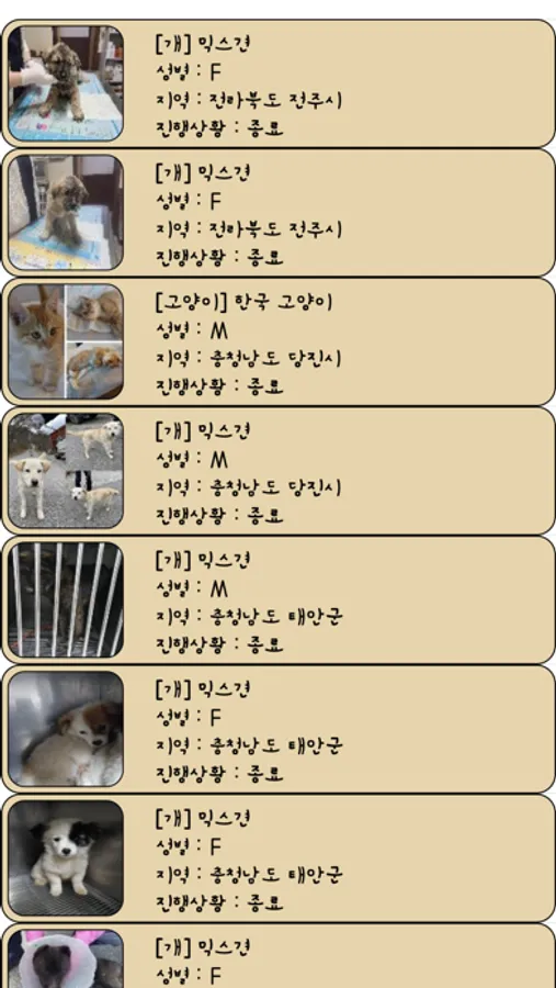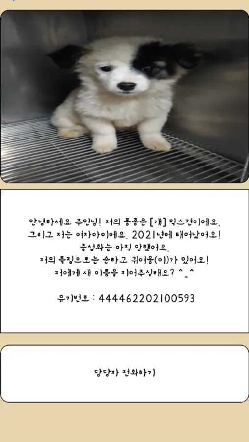 마이퍼피는 현재 전국의 보호소에 있는 유기동물에 대한 정보를 제공합니다.