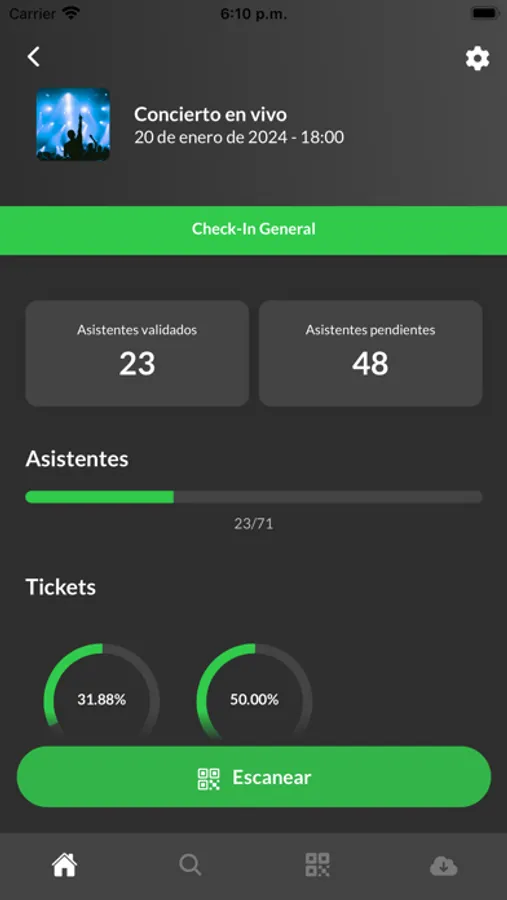 Controla el acceso a tu evento de manera rápida y eficaz. Valida múltiples formatos, como e-tickets, códigos QR, códigos de barras, cédulas de identidad/DNI y/o documentos tributarios.