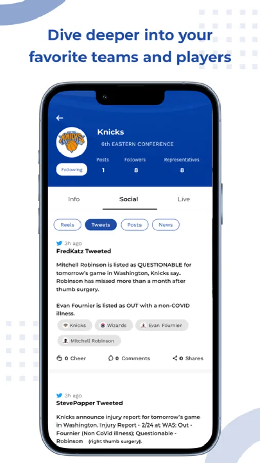 - Connect, discuss, and cheer with other fans over the top NBA content from Twitter, Instagram, and more