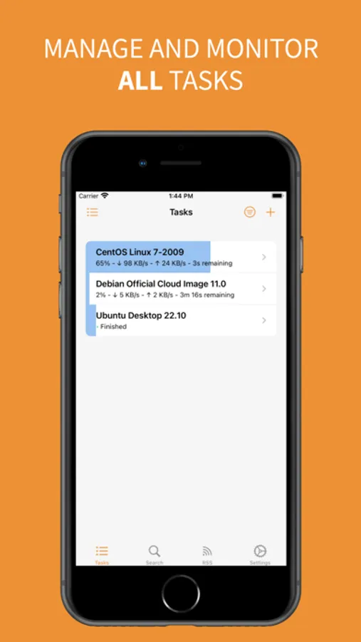 - Manage (pause, resume, delete) tasks