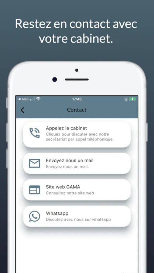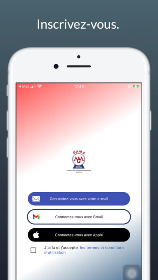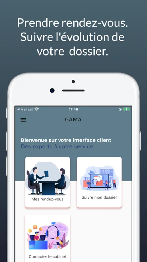 Application client de la société civile professionnelle d'avocats GAMA destinée au suivi de dossier, les dates de renvoi d'audience et les prises de rendez-vous.