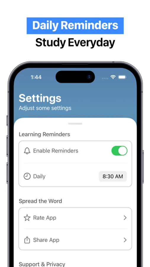 - Daily Reminders is a great helper for you so you don't miss a day studying for your exam