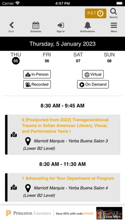 The 2023 Modern Language Association Annual Convention will take place in San Francisco and online from 5 to 8 January. Login to view Sessions and Papers saved as favorites. View schedules, locations, floor plans, and people. Attendees will now be able to facilitate their experience at the meeting using the mobile app.