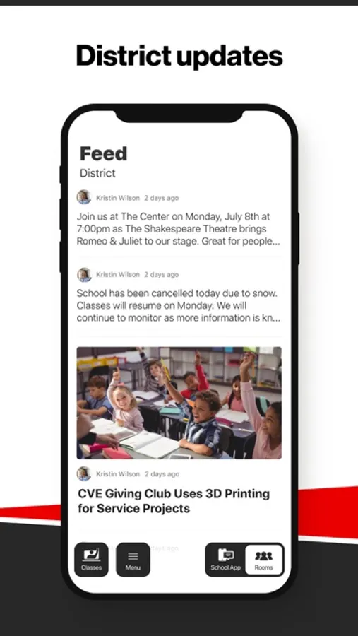 In the Live Feed is where you'll find updates from the administration about what's going on in the district right now. Whether that's celebrating a student's success, or reminding you about an upcoming deadline.