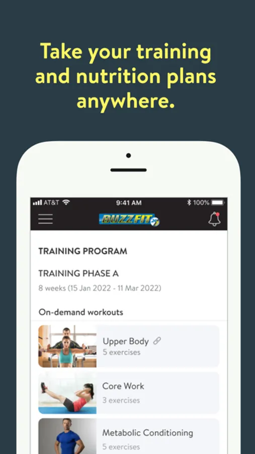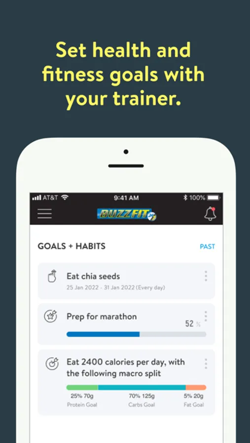 With the Buzzfit 365 App, you can start tracking your workouts and meals, measuring results, and achieving your fitness goals, all with the help of your personal trainer.