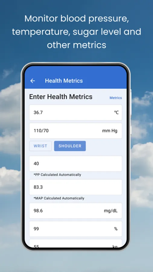 3. Monitor PP & MAP: App tracks Pulse Pressure and Mean Arterial Pressure.