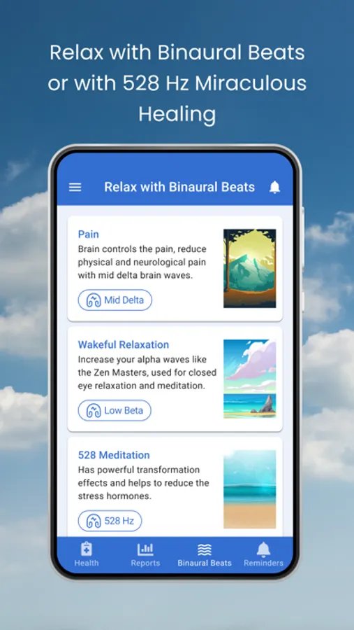 7. Binaural Music: Binaural Music with optional Ocean Waves in the App to Meditate and Reduce Pain.