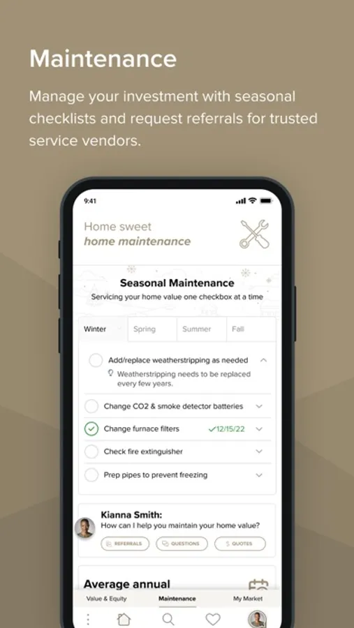 My Maintenance: Follow and complete home maintenance needs. Need a quick referral for some work for your property? Request trusted service vendors right from your agent.