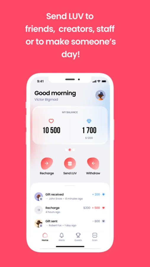 But LUV App isn't just about buying and sending gifts and tips. It's also about connecting with friends, loved ones and strangers alike by sending LUV. You can use LUV App to spread LOVE in a unique and fun way.