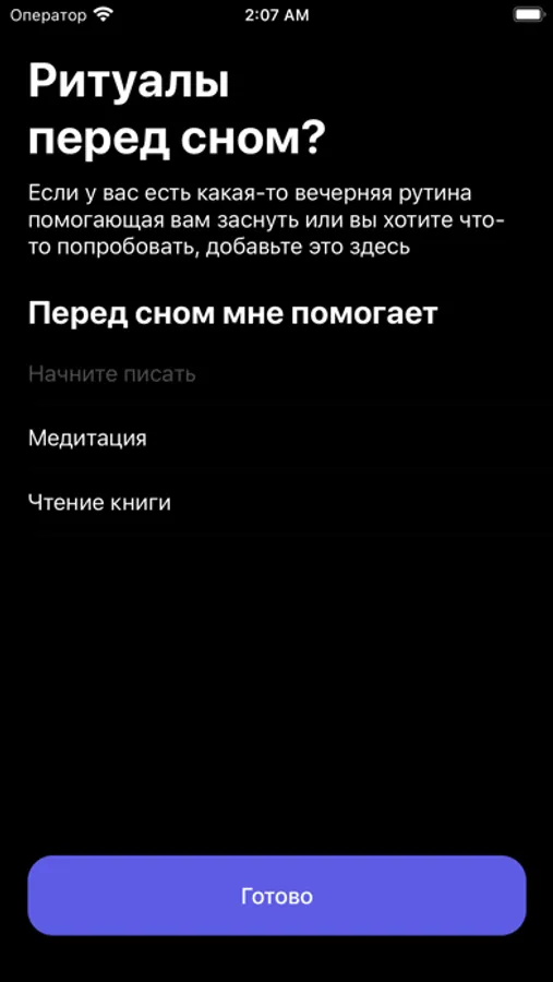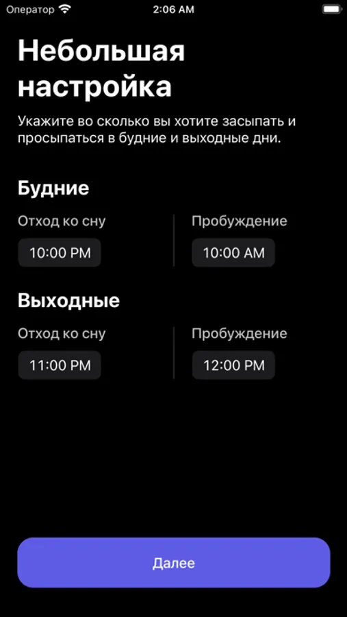 Установите режим сна для будних и выходных дней и заполните свои ритуалы перед сном. Приложение начнет напоминать вам о том, что пора ложиться спать и будет присылать уведомления когда вы, согласно графику, должны проснуться. Заполняйте дневник своего сна, указывая какая вечерняя рутина помогает вам заснуть быстрее, а что конкретно в какой-то из дней заставило вас заснуть на три часа позже графика.