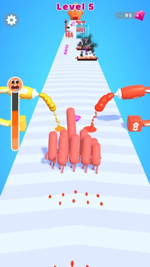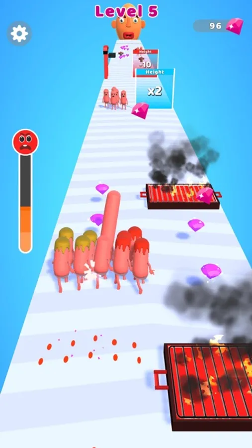 Gather more sausage and grow in size to feed him! Cover your sausages in sauce, watch out for traps and grills!